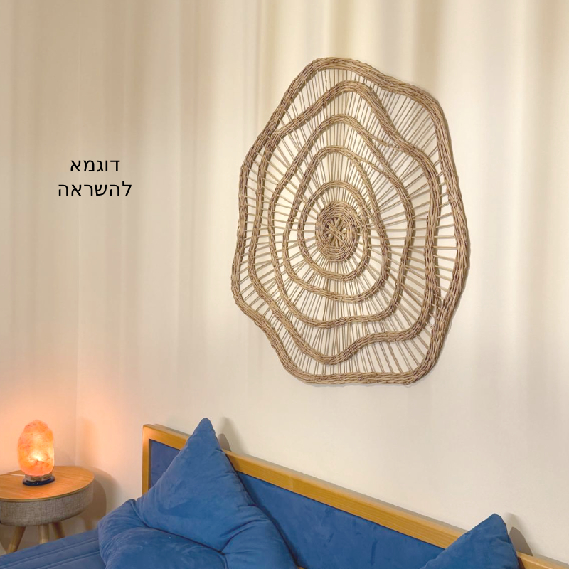 תמונת קיר, יצירה אומנותית קלועה מסנסנים. קישוט לקיר קלוע מקש וחומרים טבעיים. את הסנסנים אני אוסף במטעי תמרים בבקעת הירדן. כל יצירה היא יחודית ואין שני לה, היא תוספת של אוירה חיננית ומרגיעה. תמונת הקיר, פריט אומנותי לעיצוב בית טבעי ולאוירה כפרית מושלמת.