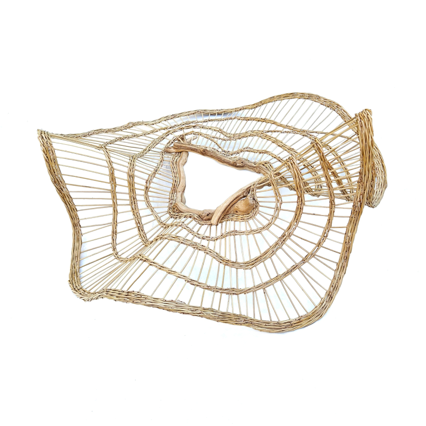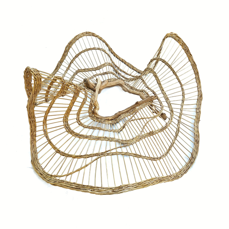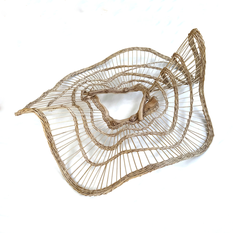 יצירת אומנות, תמונה מפוסלת קלועה מסנסנים וענפי גפן.