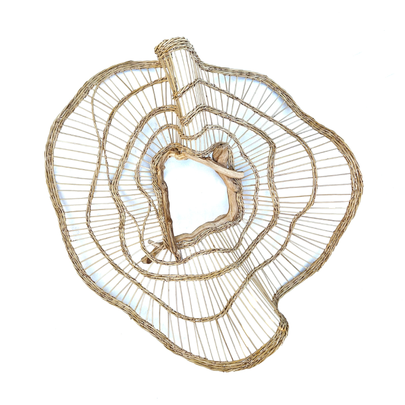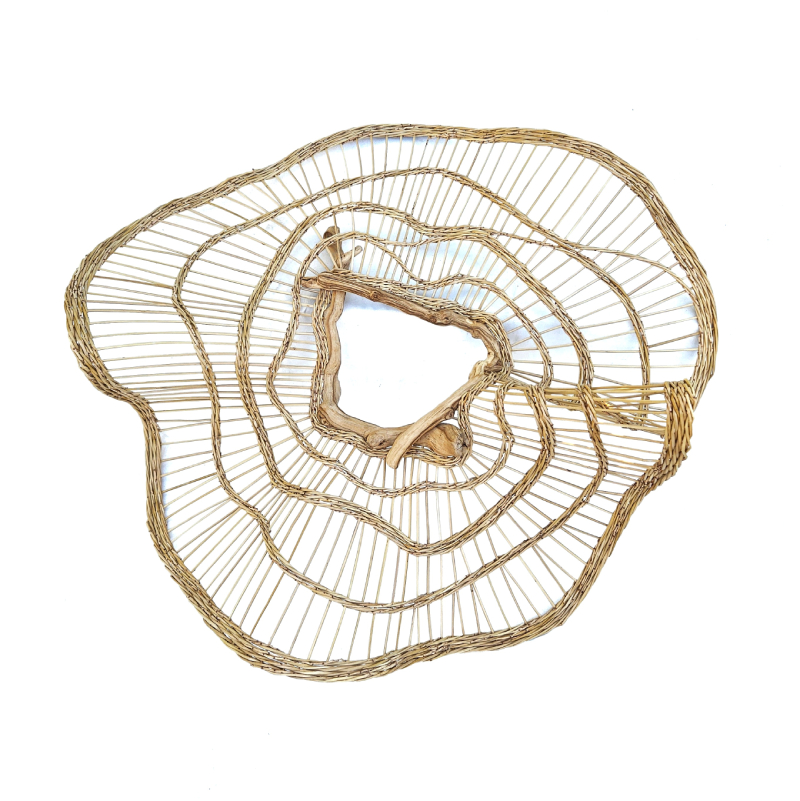 יצירת אומנות קלועה בסנסנים, קישוט קיר טבעי לסלון ולבית. עבודות אומנות קלועות מחומרים טבעיים המיועדות לתלייה על קיר. אמנות קיר יצירה טבעית קלועה מסנסנים שנאספו על ידי בבקעת הירדן. כל יצירה היא יחודית ואין שני לה, היא תוספת של אוירה חיננית ומרגיעה. מנדלה- קישוטי קיר טבעיים לסלון, יצירה קלועה בקש לעיצוב בית כפרי עדין.
