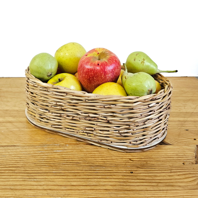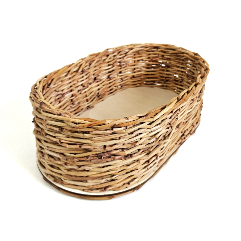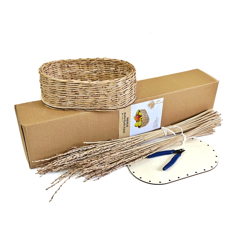 ערכות יצירה-DIY לקליעת סלסלה מסנסנים עם בסיס אליפטי מעץ. ערכה לקליעת סלסלה לפירות בפעילות עצמית ביתית.